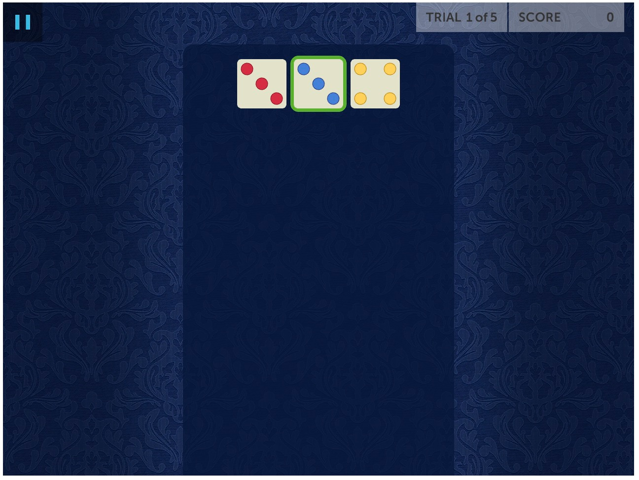As you progress through the game levels, additional rules and card properties become unlocked. Your trial score is dependent on your current level and your performance in the trial. Points are deducted for each sub-optimal card selection. If the trial is skipped, no points are earned.